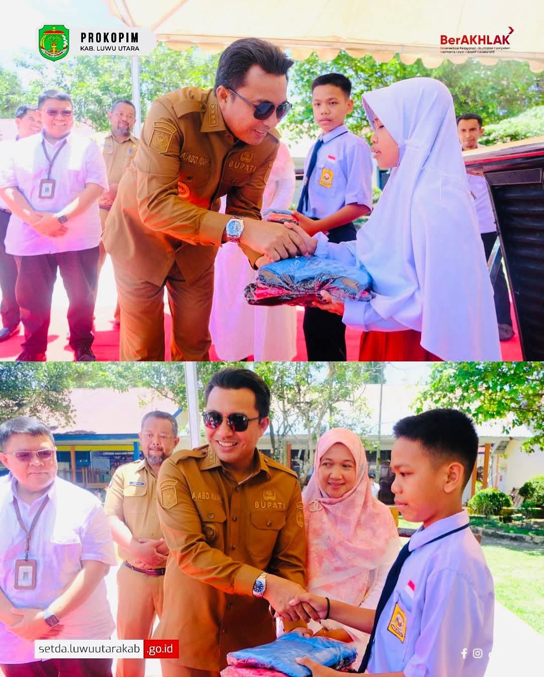 Resmi Pembukaan Masa Pengenalan Lingkungan Sekolah (MPLS)Ditandai Dengan Pemukulan Gong dan Penyerahan Seragam Oleh Bupati Luwu Utara Andi Abdullah Rahim.